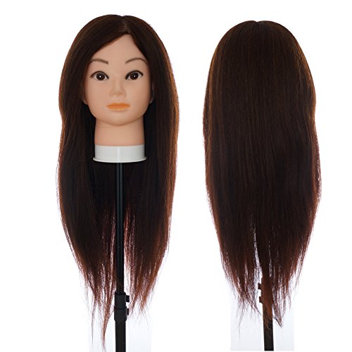 -. Title : 練習用ウイッグ 80%人毛 ブラウン ViogrG マネキンヘッド へアの長さ60cm 編み込み練習用 ヘアアイロンのカール用 スタンド付き