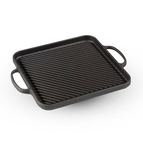 Studio : tabletop king Publisher : tabletop king Product Description The Cast Iron Grill Square Pans beautifully cooks meats and vegetables. The high temperature retained by the grilling pan sears the outside of ingredients and locks in the flavors inside. The indentations are deep enough to elevate ingredients from any excess oils, and helps create perfect grill marks. 0