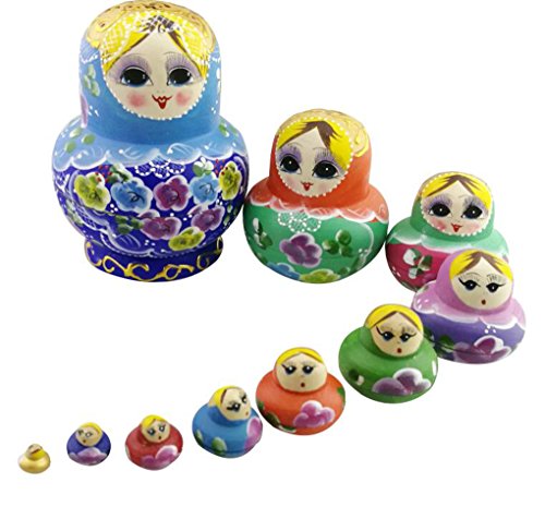 -. Title : Set of 10 Colorful Bulgy Belly Flower Pattern Russian Wood Nesting Dolls Montessori Stacking Toys Kids Christmas Birthday Gift Home Decoration
