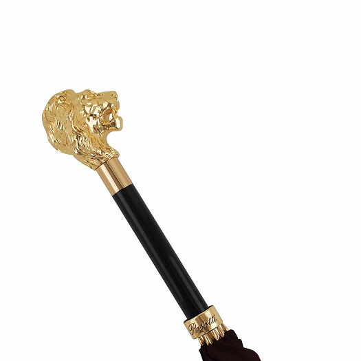 Burgundy Umbrella with Gold Lion Handle Automatic Opening