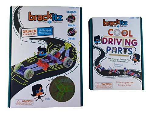 -. Feature : Brackitz Driver contains 43 pieces and directions for 10 driving machines including an ATV, Airplane, Sling-shot car and more. / Brackitz Cool Driving Parts expands the Driver set for more building fun. / All Brackitz Sets work together for mix-n-match play. / Suitable for ages 4-104