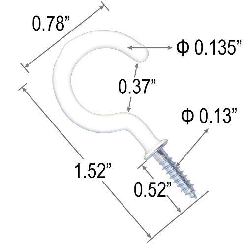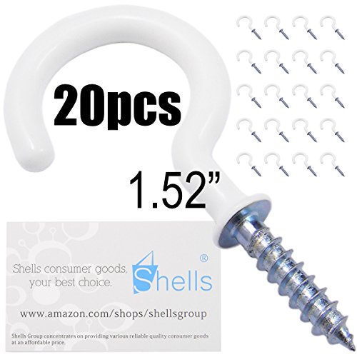 Shells 20PCS White Color 1.52 Inches Vinyl Coated Hooks Cup Hooks Round End Screw Hooks Self-tapping Screws Hooks Question Mark Shape Hooks