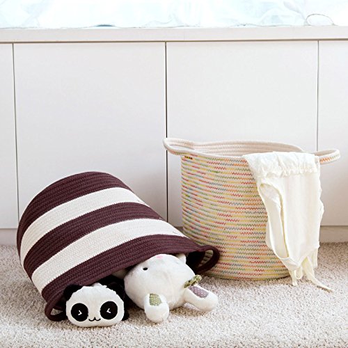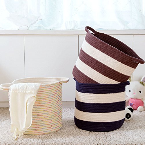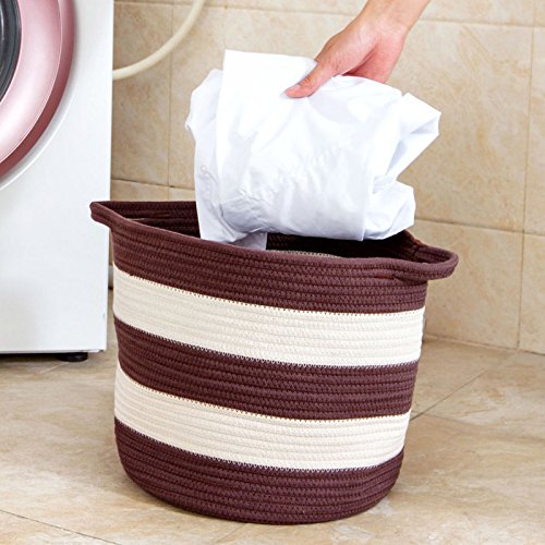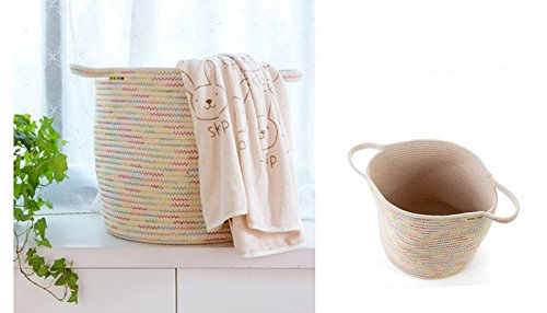 -. Feature : Material: Cotton rope knitted / Size: about 30*30cm/11.81*11.81inch / LIGHTWEIGHT & PORTABLE: No assembly and tools required. To be a competent helper, it can not only help you organize and store the sundries to save room space, but also can be folded easily when in no use (little space occupation). / ORGANIZE EVERYTHING: Large capacity for storing all kinds of debris,clothes,children toys,baby products,pet products. Perfect for nurseries, laundry rooms, closets, bedrooms, dorms. / STYLISH DESIGN: With modern and stylish design, our storage basket bins combine both of the ornamental and practical style. They are not only your household life good helpers but also attracting decorations.