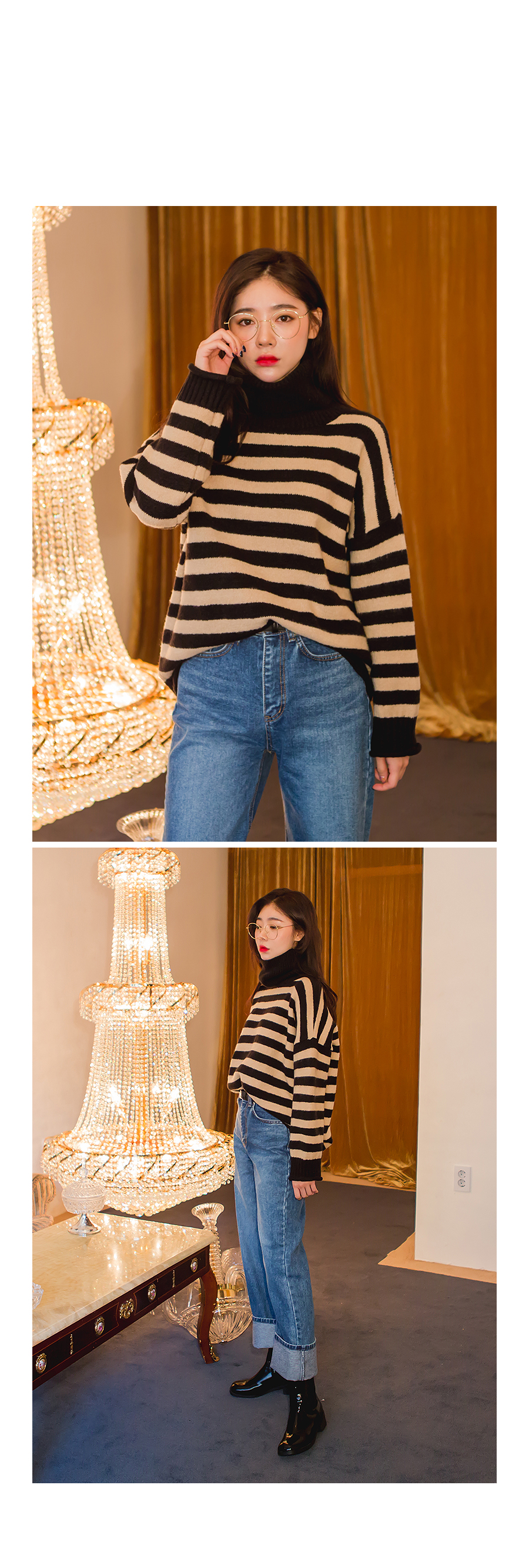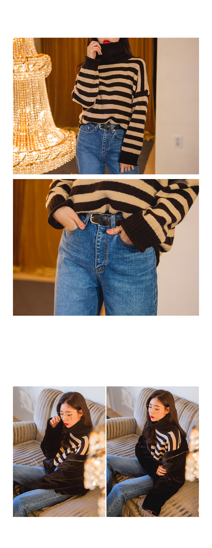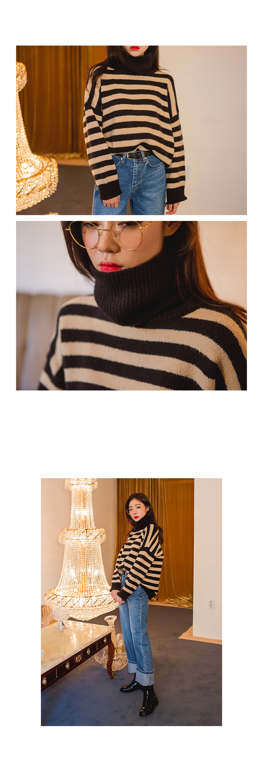 폴라부분과 소매 끝 마무리에 두꺼운 패턴감으로