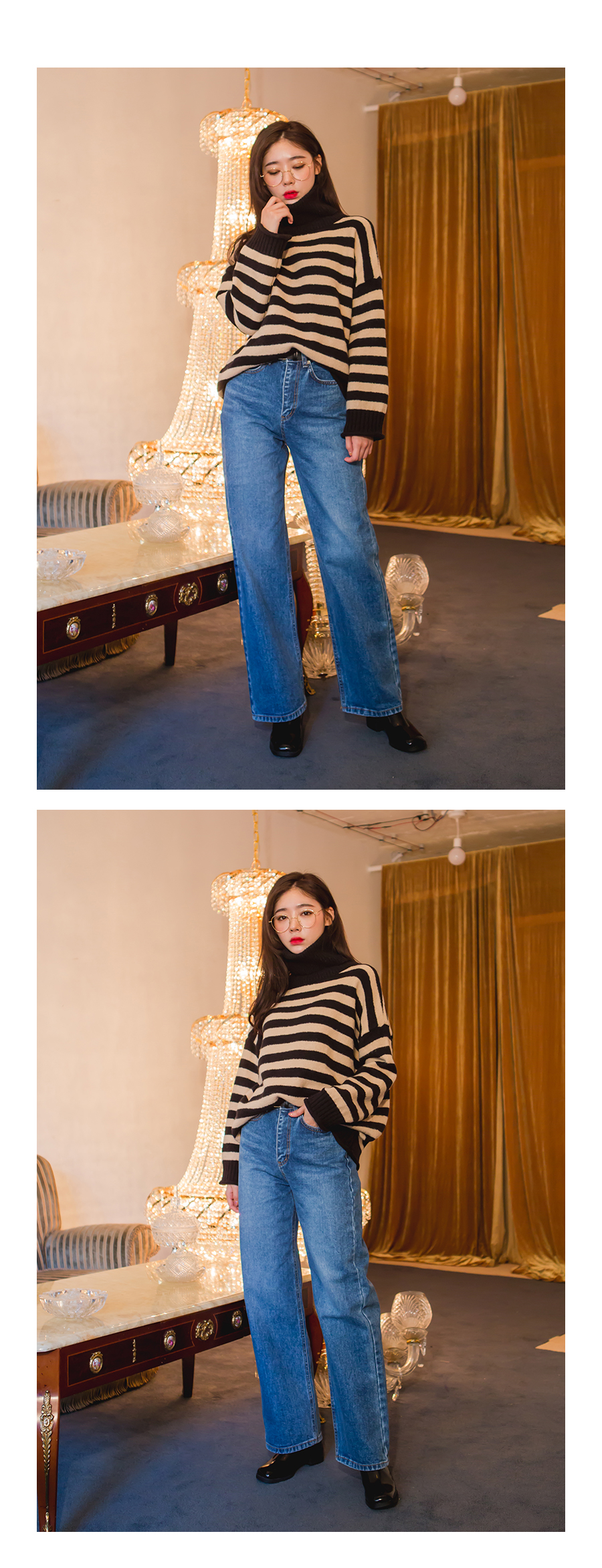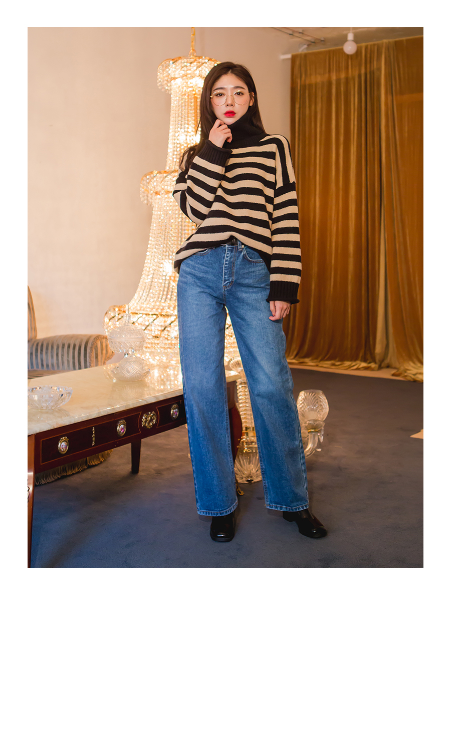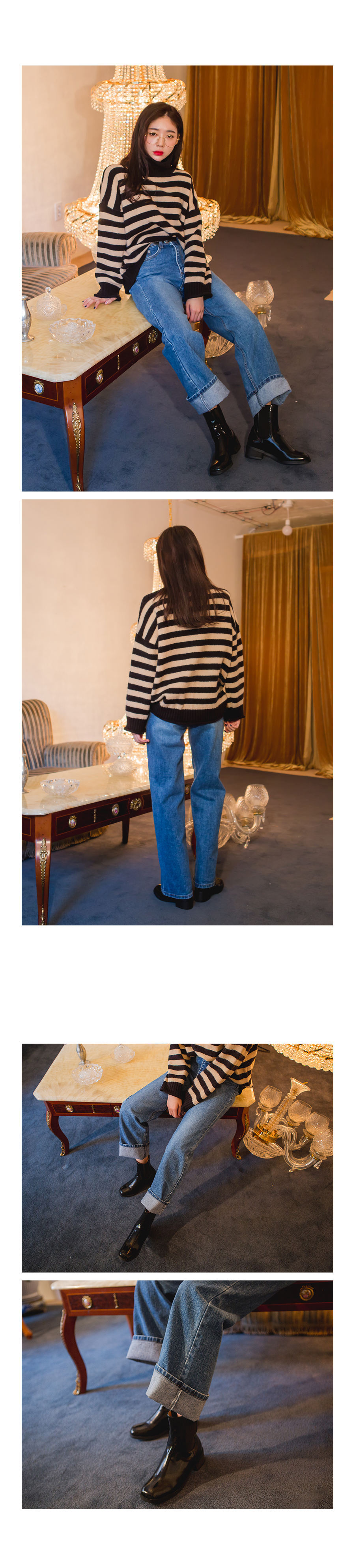 폴라부분과 소매 끝 마무리에 두꺼운 패턴감으로