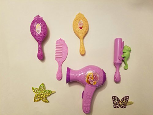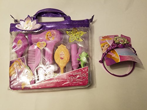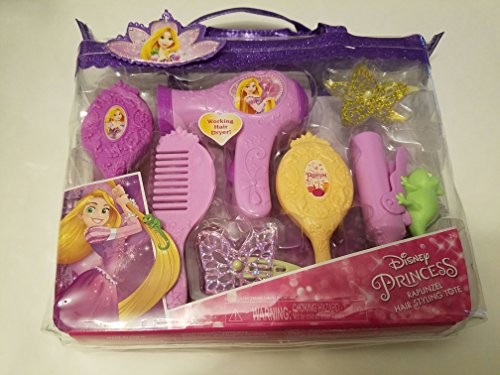 The Princess Beautify Tote comes with Princess Theme hair accessories Girls can play with the battery operated hair dryer - with real sounds effects Complete with a gold vum tiara that lights up when you press the gem For ages 3 and upFeature