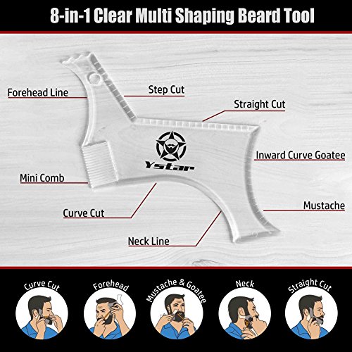 Trim and style the perfect beard, mustache, sideburns, or facial hair with a transparent grooming and shaping template from Ystar. There's nothing like sporting a good beard, handsome mustache, or some rugged facial hair to show how much of a man you really are; but keeping it neatly groomed and looking great makes you a true gentleman. That's why we created the Ystar Beard Shaping Template Tool, an easy-to-use transparent guide that lets you properly groom your entire face with perfect symmetry every time. The best grooming guide for any look, get one today and enjoy a precision shave. Product Details: - Professional Shaping Template Tool