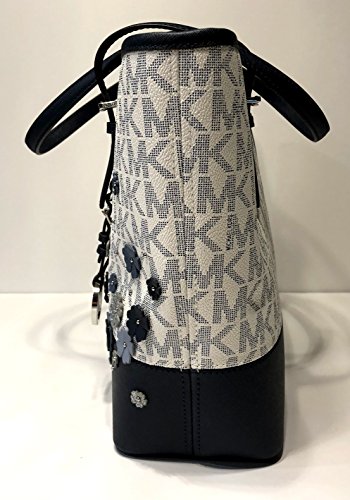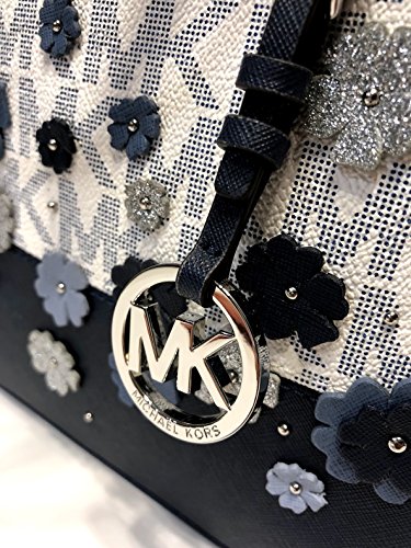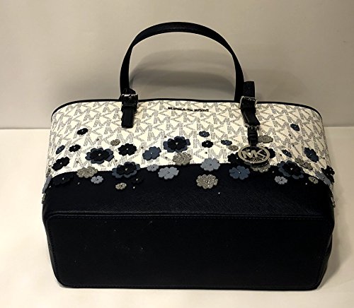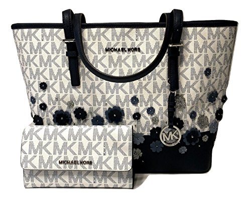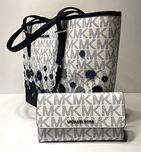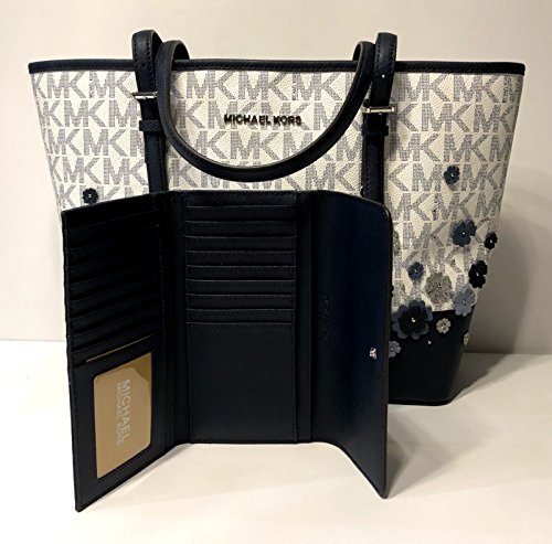 MICHAEL Michael Kors Jet Set Travel MD Carryall Tote bundled with Michael Kors Jet Set Travel Large Trifold Wallet (Signature MK Navy Floral)