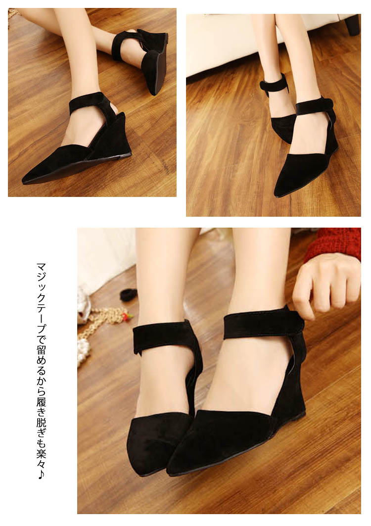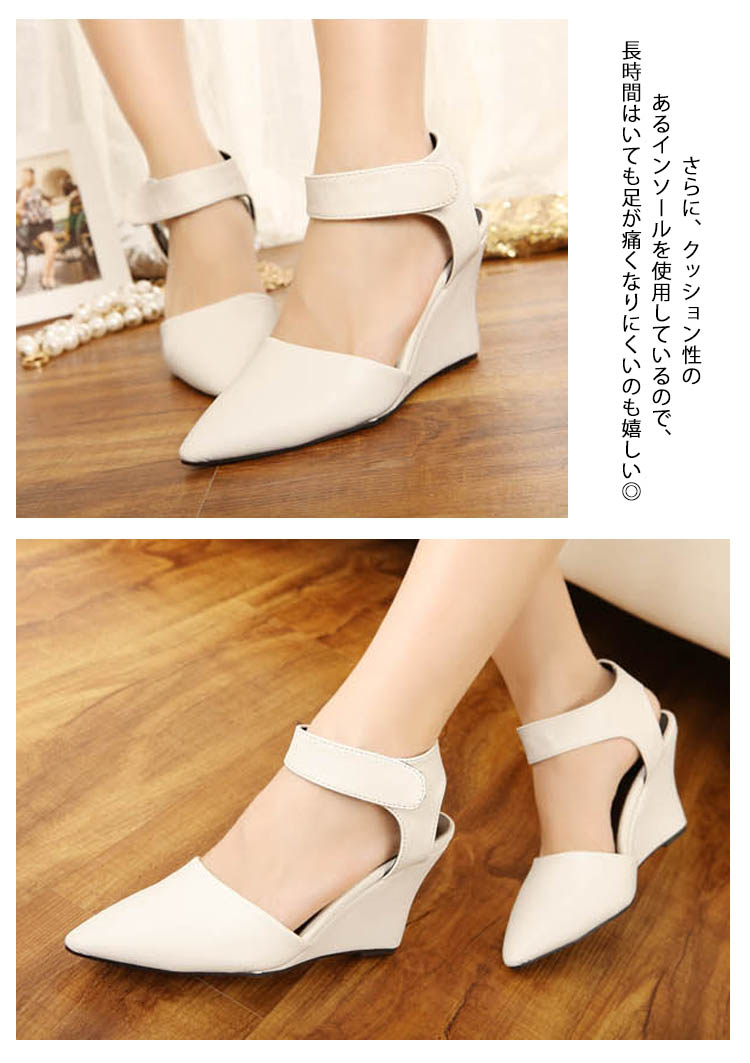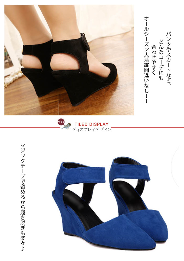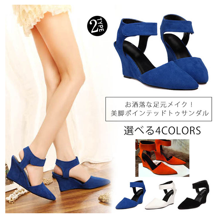 | お洒落な足元メイク!美脚ポインテッドトゥサンダルウェッジソールタイプで歩きやすいさらに、クッション性のあるインソールを使用しているので、長時間はいても足が痛くなりにくいのも嬉しい◎マジックテープで留めるから履き脱ぎも楽々♪パンツやスカートなど、どんなコーデにも合わせやすくオールシーズン大活躍間違いなし!!マジックテープで留めるから履き脱ぎも楽々♪ | |