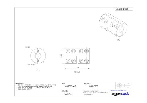 Climax Part 2ISCC-025-025 Mild Steel, Black Oxide Plating Clamping Coupling, 1/4 inch X 1/4 inch bore, 11/16 inch OD, 1 1/8 inch length, 4-40 x 3/8 Clamp Screw