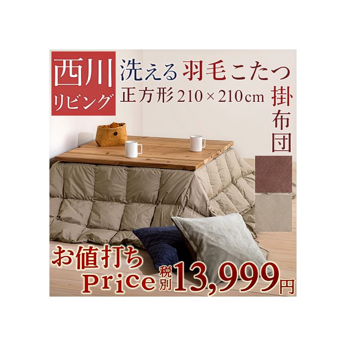 원본상품명:【大感謝ク?ポン?券中!】【こたつ布?掛け布?正方形西川】洗濯機で洗える!!ふんわり?くて暖か~い!西川リビング 羽毛こたつ掛け布?(正方形)天板が普通