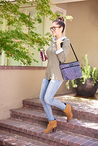 This lunch bag features a zip closure to lock in cool air. The insulated liner is water resistant, and an ergonomic shoulder strap conveniently distributes weight. An exterior slip pocket holds utensils, napkins and personal items