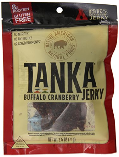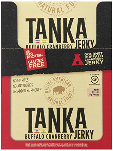 ReleaseDate : 2014-05-16 Studio : Tanka Publisher : Tanka Binding : Grocery Product Description Tanka gourmet buffalo jerky is deliciously meaty, wholly satisfying and 100% natural. We hand cut and slow cure each slice of our tender gourmet buffalo jerky in real cranberries with no artificial ingredients. Tanka gourmet jerky is gluten-free, minimally processed and made from animals that have been raised without the use of growth hormones or antibiotics. Buffalo, dried cranberries, sea salt, celery juice, black pepper, cane juice, red pepper, spices, garlic, onion powder. 0