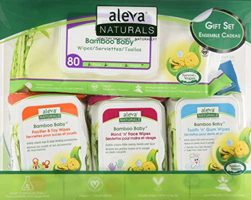 Studio : DG LABORATORIES INC Publisher : DG LABORATORIES INC Binding : Health and Beauty Product Description Aleva Naturals Bamboo Baby Gift Set is the perfect baby shower gift, featuring the essentials for a brand-new baby from the expert in natural and organic baby skincare, Aleva Naturals. Includes: Bamboo Baby Wipes - 1 pack (80 Wipes) Bamboo Baby Pacifier Toy Wipes - 1 Pack (30 Wipes) Bamboo Baby Breathe Easy Wipes - 1 Pack (30 Wipes) Bamboo Baby Tooth 'n' Gums - 1 Pack (30 Wipes) Bonus trial size sample included. 0