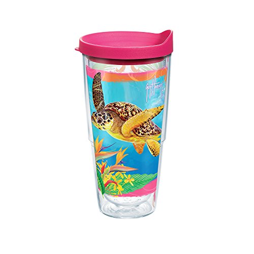 Tervis Guy Harvey Colorful Turtle Wrap Tumbler with Fuchsia Lid, 24 oz, Clear