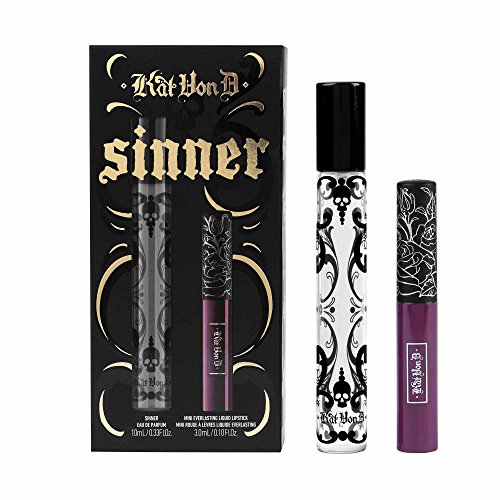 -. Binding : Misc. -. Brand : Kat Von D -. Color : Sinner -. EAN : 0816657023763 -. Feature : Kat Von D SINNER Travel Duo includes: / Sinner Eau De Parfum Travel Spray (0.33 oz /10ml) / Everlasting Liquid mini Lipstick in Sinner (Midnight Plum; NEW SHADE!) - 0.1 oz /3ml / New in box -. IsAdultProduct : 0 -. Label : Kat Von D -. Manufacturer : Kat Von D -. MPN : sinner -. NumberOfItems : 1 -. PackageQuantity : 1 -. PartNumber : sinner -. ProductGroup : Beauty -. ProductTypeName : BEAUTY -. Publisher : Kat Von D -. Size : TRAVEL -. Studio : Kat Von D -. Title : Kat Von D SINNER Travel Duo - Eau De Parfum Travel Spray + Everlasting Liquid Lipstick mini -. UPC : 816657023763