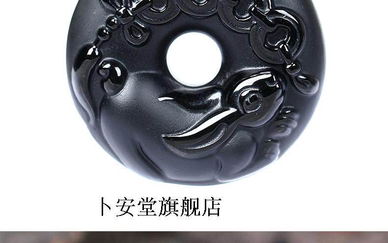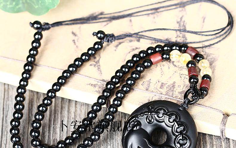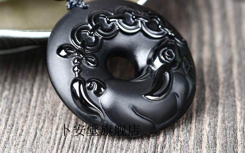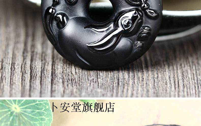 开光狗年12生肖属兔吉祥物鹿鹭通财黑曜石雪猊献珠吊坠男女款