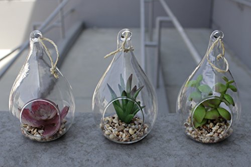 Nature's Mark 3 Pack 6"H Faux Succulent with Tear Drop Hanging Glass