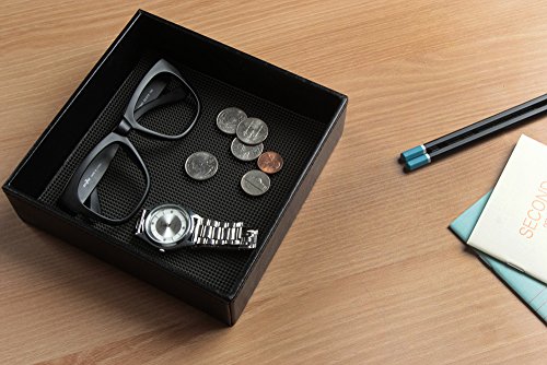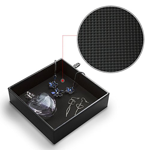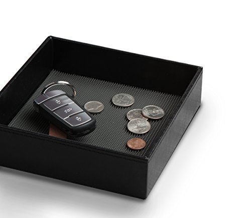 Jack Cube Leather Rubber Finger Scraper Mat Valet Tray Storage Tray Cosmetic Stationery Organizer Catch-All for Keys, Phone, Wallet, Coin, Jewelry and More(Black, 6.9 x 6.9 x 1.9 inches) - :MK206A