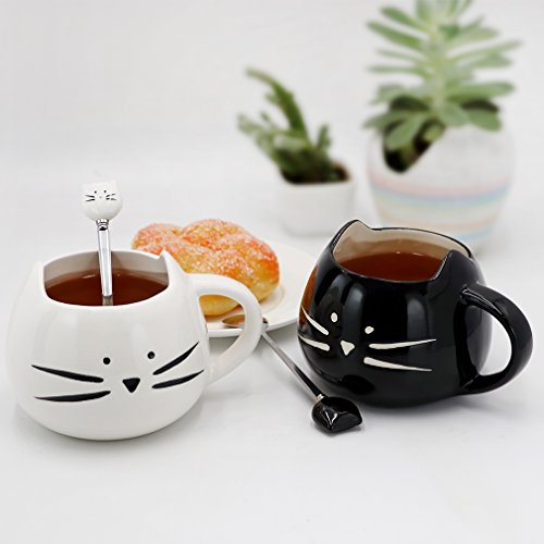 Specification: Bland name: Koolkatkoo Material: Ceramic Capacity: 12 oz Weight: 0.8kg Color: white black Package include: 1 white cat mug 1 black cat mug 1 white spoon 1 black spoon Advantages: -Cute cat coffee white black mugs with spoons, lovely and novelty -Ceramic material cat coffee mug set in a package -Perfect gifts for dad, mom, best friend, teacher, couples and other cat lovers 0