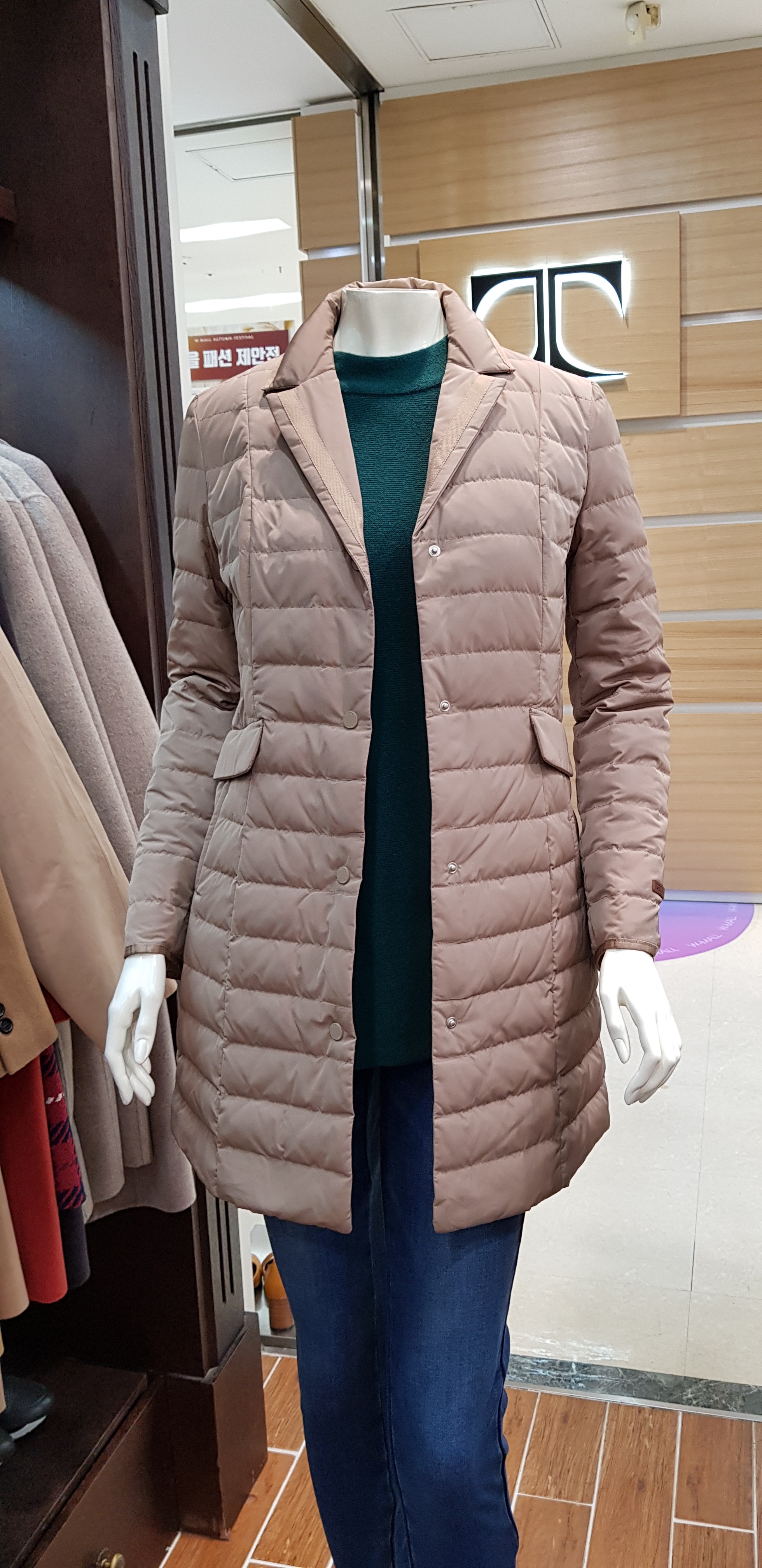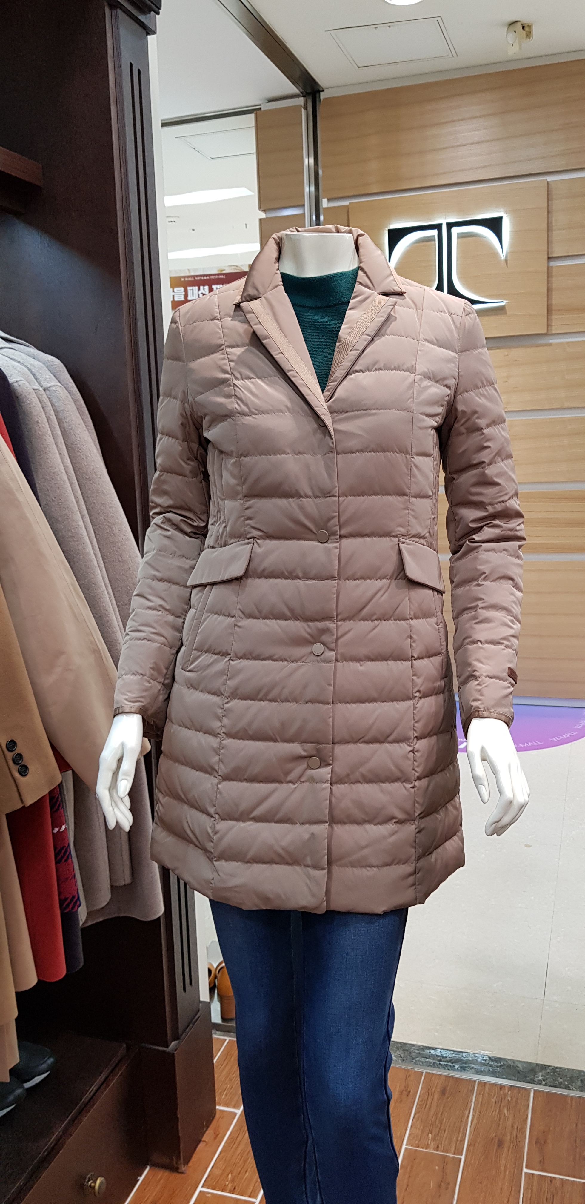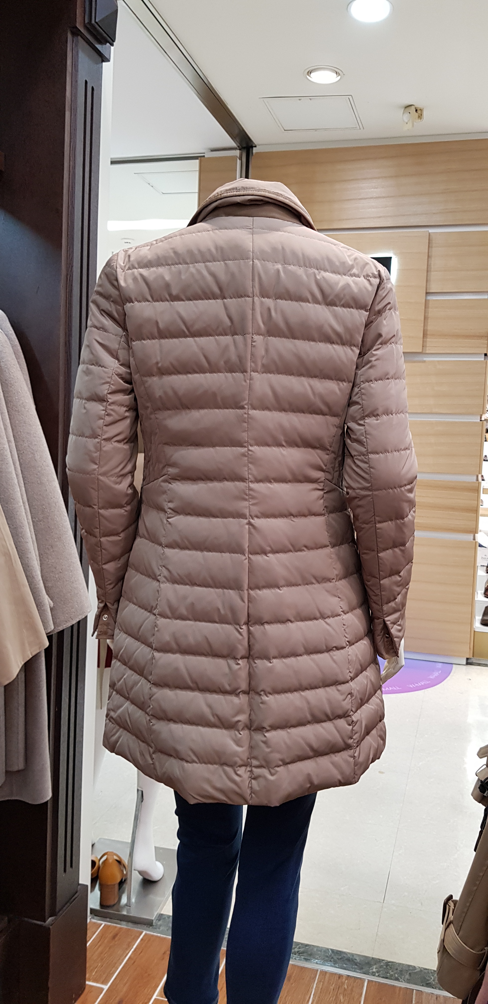 키이스~기본 테일러카라의 구스다운입니다 슬림한핏이라 날씬해보이고 솜털의 함량이 높아 가볍고 따뜻한 코트입니다 총장82센티입니다