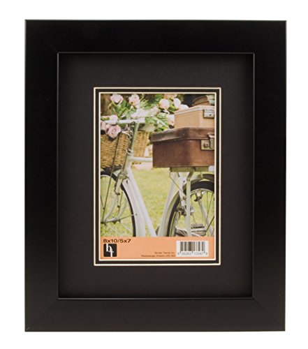 BorderTrends Noir 8x10/5x7-Inch Photo Frame, Black with Black Mat