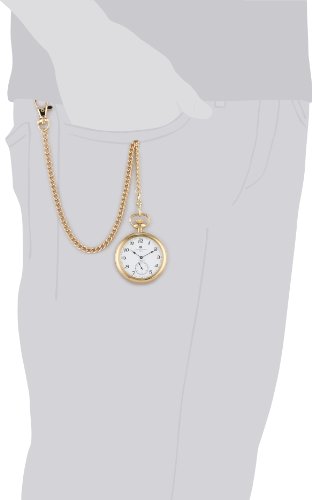 -. Feature : 14k gold-plated stainless steel 51mm open face case with a matching curb chain / White dial with Arabic numerals / 17 jewel mechanical movement / Deluxe gift box