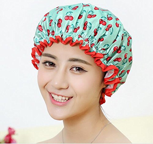 HEMALL Shower Cap, Bath Hat, Waterproof Hair Cap, Cherry, Q048