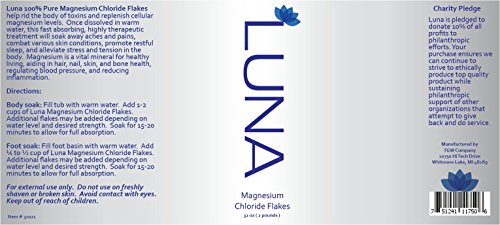 - HANDCRAFTED IN THE UNITED STATES OF AMERICA: Luna is proud to produce all Luna 100% Pure Magnesium Chloride Flakes in the United States of America.