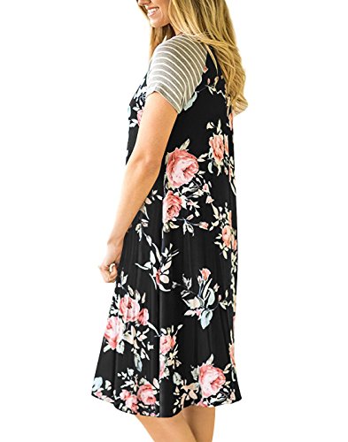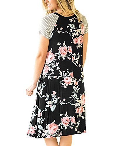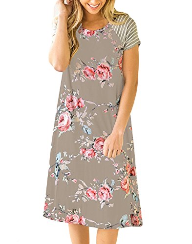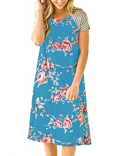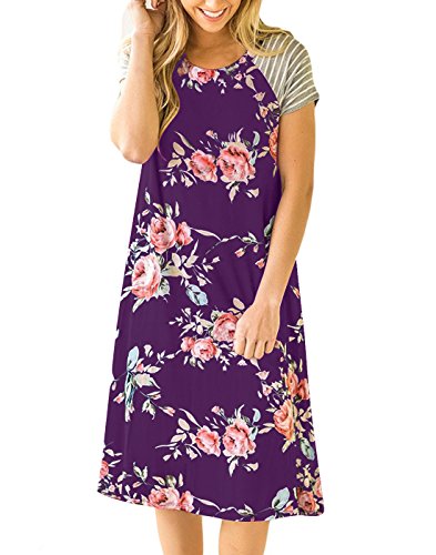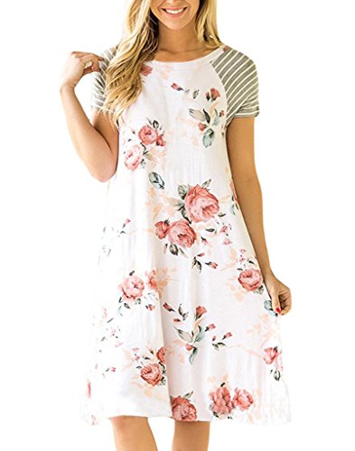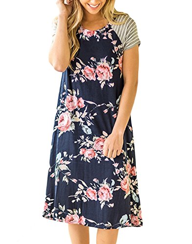 "Vemvan Women's Floral Print Casual Short Sleeve A-line Loose T-shirt Dresses Knee Length