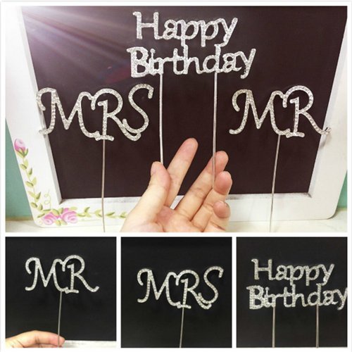 La Tartelette Rhinestone Crystal Silver Cake Topper Words "Mr" Anniversary Birthday Festival Party Gathering