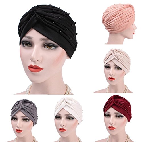 (Appoi)/Accessories/Hats/DIRECT FROM USA/Appoi Women Casual Hap Caps Indians Hat Muslim Ruffle Cancer Hat Pearl Beanie Scarf Turban Head...