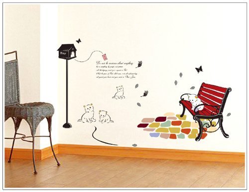 - Title : New Design White Cats on Chair under Mailbox with Black Butterflies and leaves Wall Mural Decor DIY Wall Sticker