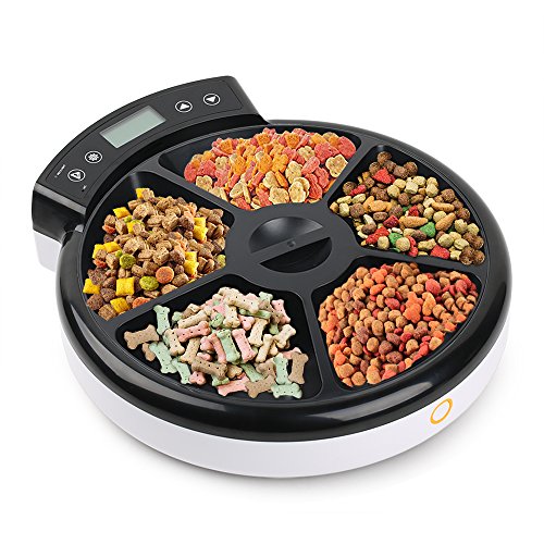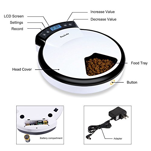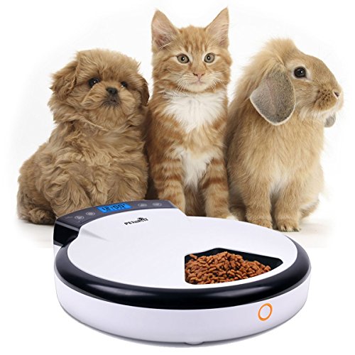 Automatic Electronic Pet Feeder can feed your pet according to the time and quantity you preset. Programmable up to 5 meals per day. Great for cats and small & medium size dogs.