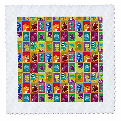 3dRose qs_113398_2 Cute Crazy Colorful Monsters and Aliens Cartoon Blocks Pattern-Quilt Square, 6 by 6-Inch