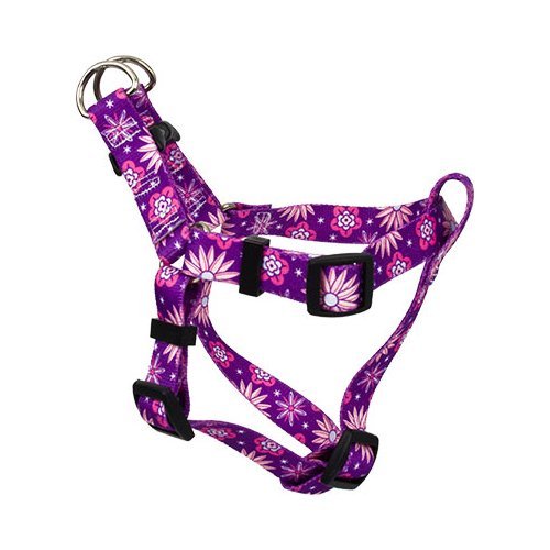 Studio : Yellow Dog Design Publisher : Yellow Dog Design Binding : Misc. Product Description Purple Flowers Small Roman Harness. This Harness can be sized from 9-Inch to 15-Inch. The Roman Harnesses are made in the U.S.A of 100-percent vibrant color-fast polyester with durable plastic slip locks, metal O-rings and metal D-rings. Best of all The harness is washable. 0