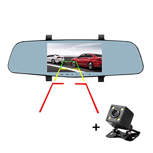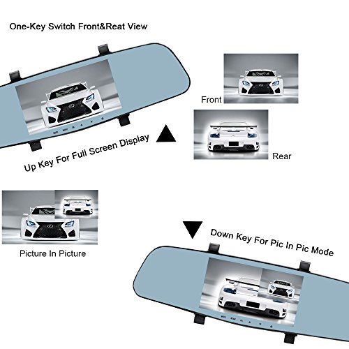 3 functions in 1, Rearview mirror + front camera DVR + rear view camera.