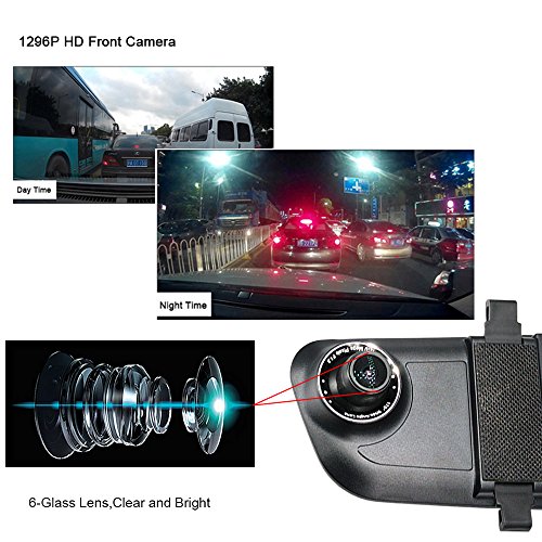 DUAL-LENS REARVIEW MIRROR DASH CAM: Ezonetronics dash cam has two cameras and 5.0 inch rearview anti-dazzling mirror. Excellent 1296P resolution front camera with 145°wide angle lens+ weatherproof rear cam. You can have a more comprehensive picture of drivers' daily commutes and roadside events. Feel safer with twice the coverage, recording the road ahead as well as oncoming traffic from behind