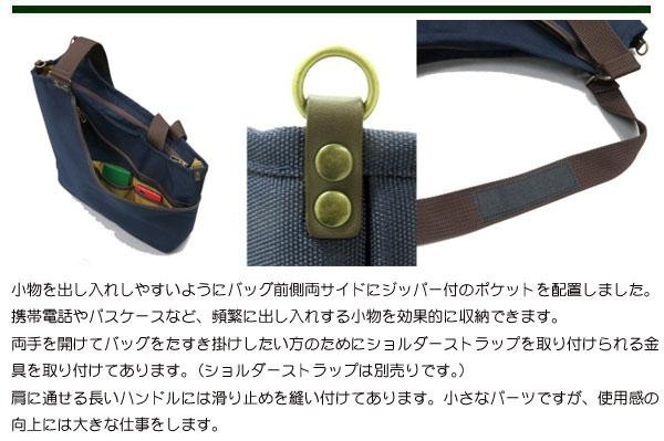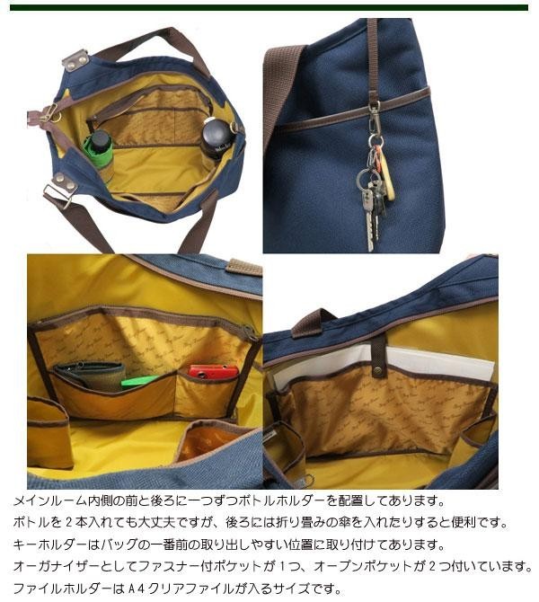 | 使い勝手にこだわったA4ファイルが収納可能なトートバッグです。自分の目の届く前側には小物を出し入れしやすくするために沢山のポケットを配置、盗難防止用にファスナーを取り付けてありますが、Rの付いたファスナーでスムースに開閉できます。実際の使い易さとデザインの面白さを融合させたビジィ・ビーバーの自信作です。 |