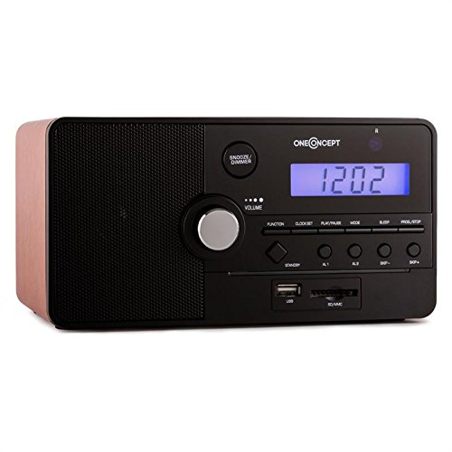 Radiowecker mit SD-, USB- und AUX-Eingang | zwei Weckzeiten und Sleepfunktion | attraktives Holzgehäuse