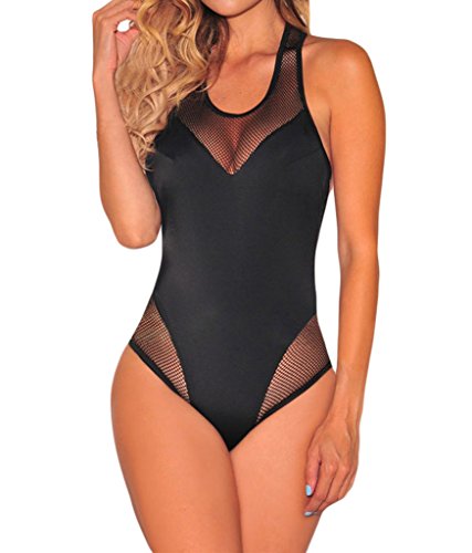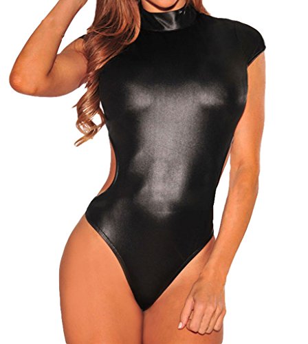 Shawhuwa Womens Sexy Striped Open Back Cap Sleeves Bodysuit