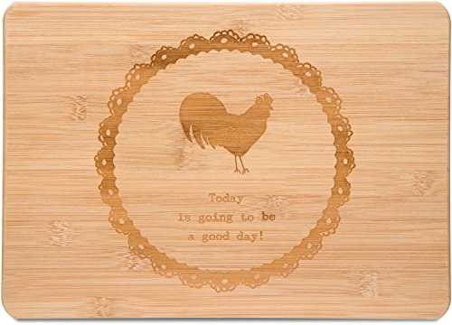 Pavilion Gift Company Live Simply "Today is Going to be a Good Day" Chicken Engraved Bamboo Cutting Board, 13" x 9", Brown