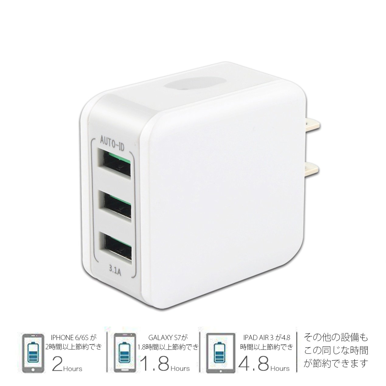 "Smart IC" function is installed, it can automatically detect the equipment connected to the charger and charge it with the optimum current for that equipment.