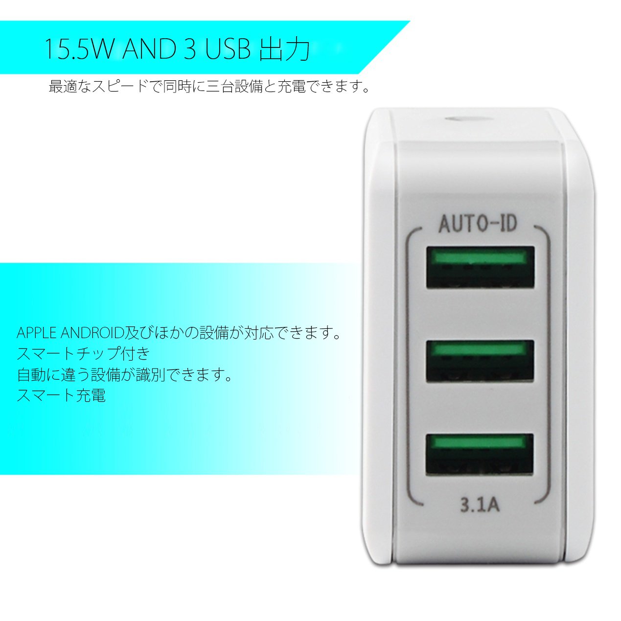 ● Output: DC 5 V = 3.1 A 15.5 W