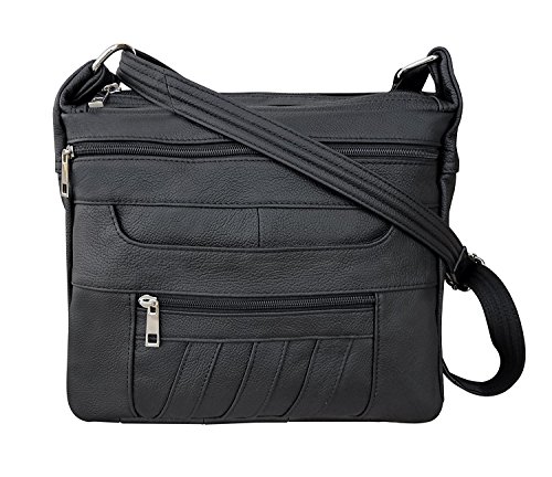 Product Description Roma Leathers 7082 concealed carry cross-body purse is not only stylish but well-designed. Equipped with a long adjustable shoulder strap suitable for cross-body carry, two large zipper openings in the top. The top zipper on the front of the purse opens to a full width and 3/4 deep compartment. The gun compartment is on the end and is closed by a YKK lockable zipper. Below this zipper is a curved top slot pocket. And below the slot pocket is a half length zipper compartment trimmed in lap-strake leather accent. 0