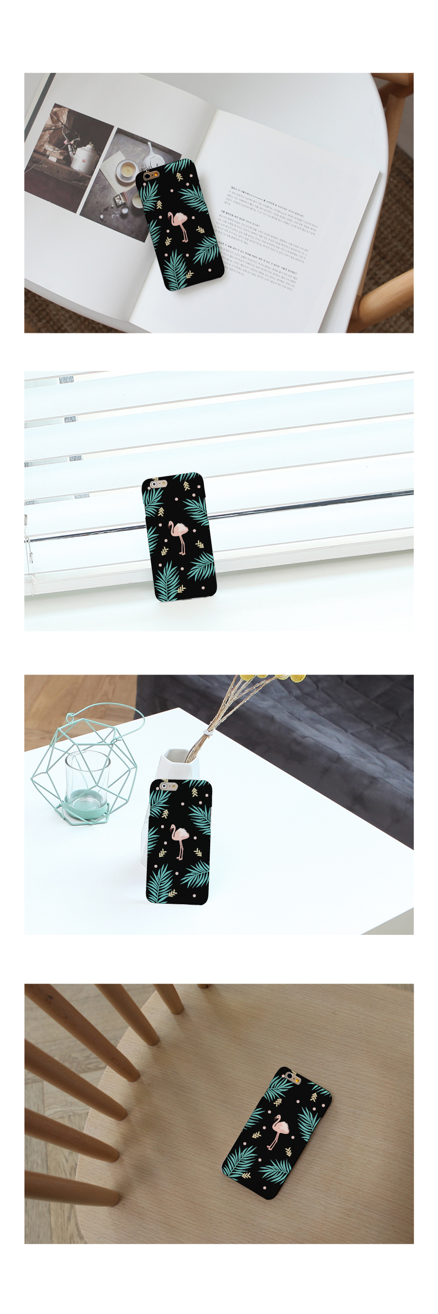 [iphone7+]NBH-0062 flamingo and leaves black hard case