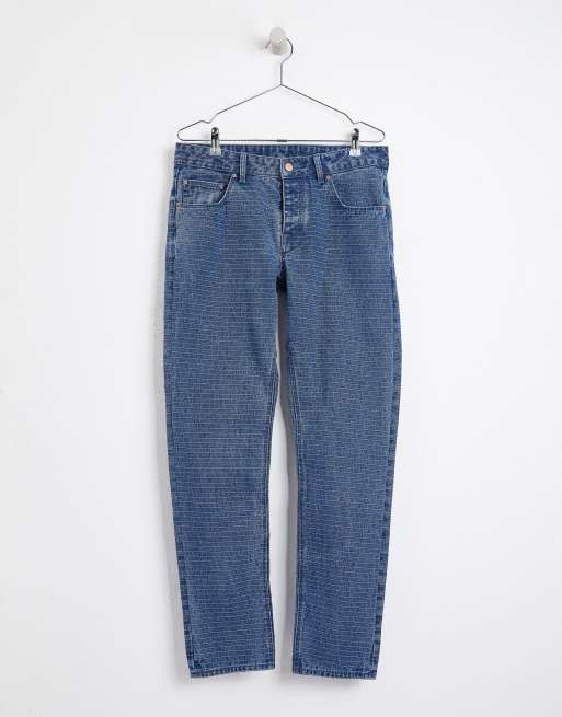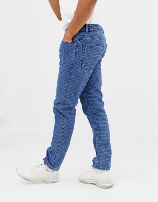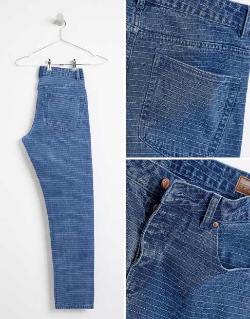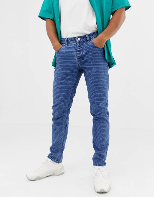 ASOS DESIGN slim jeans in mid wash blue with horizontal pin stripe