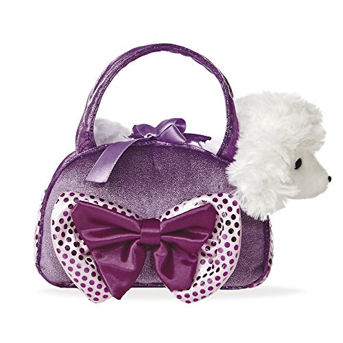 Studio : BabyCentre Publisher : BabyCentre Binding : Toy Product Description Fancy Pal Poodle is sitting in a pretty purple bag. The bag has a big beautiful purple and shiny polka dot bow on the front. The very soft white poodle is removable from the gorgeous, high detailed bag. Have fun with your Fancy Pal friend wherever you go. Brought to you by Aurora World's expert team. Approx. 8 Inches. 0