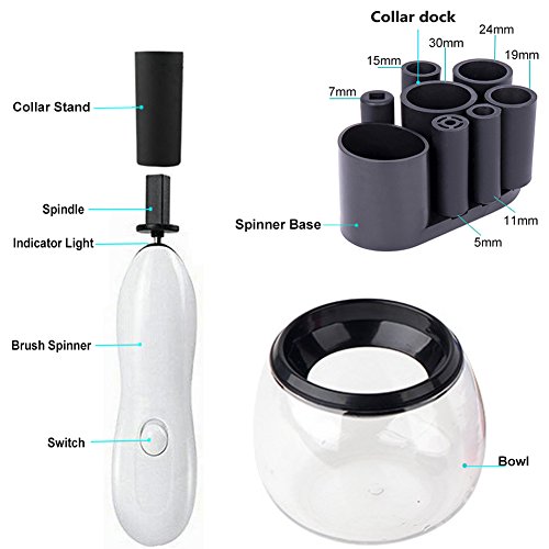 - ♥ Suitable for Different Sizes - This makeup brush cleaner kit comes with different size adapters ranging from small to large. So you just find the size it would fit with. Unique collar stand can effectively place collars and make up brushes, no longer worry about them scattered to anywhere.