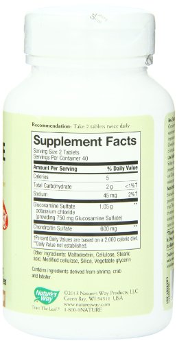 -. Binding : Health and Beauty -. Brand : Nature's Way -. Label : NATURE'S WAY -. Manufacturer : NATURE'S WAY -. NumberOfItems : 1 -. PackageQuantity : 1 -. ProductGroup : Health and Beauty -. ProductTypeName : HEALTH_PERSONAL_CARE -. Publisher : NATURE'S WAY -. Studio : NATURE'S WAY -. Title : Nature's Way Glucosamine Chondroitin